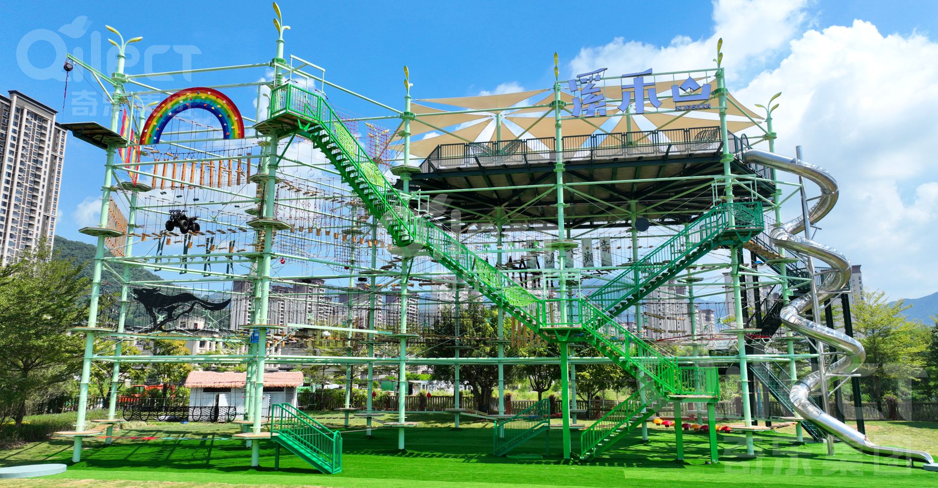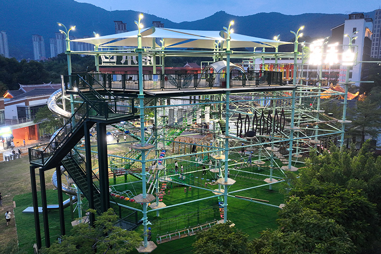 鉆石塔拓展樂園是一項勇敢者的戶外休閑娛樂項目,它通過在鋼結(jié)構(gòu)或木結(jié)構(gòu)立柱間設(shè)置并搭建各種難易不同、風(fēng)格迴異、超強刺激的關(guān)卡障礙活動環(huán)節(jié)將立柱連成一條線路,玩家需要通過懸空橋梁、網(wǎng)道、步道、木桶、秋千、索道和其他趣味環(huán)節(jié)等方式進(jìn)行樹木間的探險,通過爬、滑、游、跨、跳、飛等動作越過所有障礙,到達(dá)終點,讓你體驗高空墜落與自由滑翔的快感,感受攀爬與穿越的刺激。